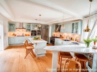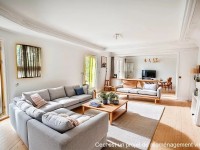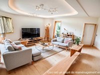 Au rez de chaussée, grand séjour avec cuisine américaine et magnifique cuisine d'été sur terrasse et piscine, chambre de plain-pied avec salle de bains, salle de sport et sauna.